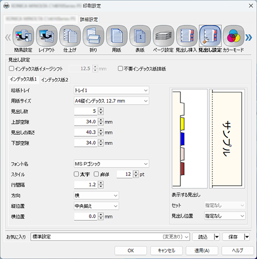 [見出し数] | インデックス紙の見出し(タブ)の数を設定します。