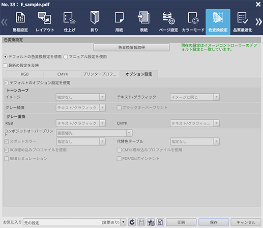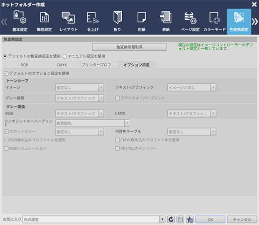 [デフォルトのオプション設定を使用] | デフォルトの色変換設定を使用して色変換をする設定をします。 |