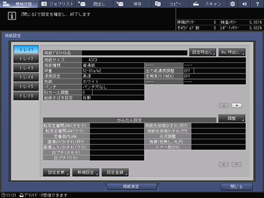[用紙設定]では、給紙トレイに用紙条件を設定できます。