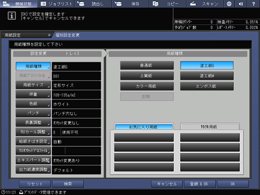 タッチパネル - [機械状態] - [用紙設定] - [設定登録]