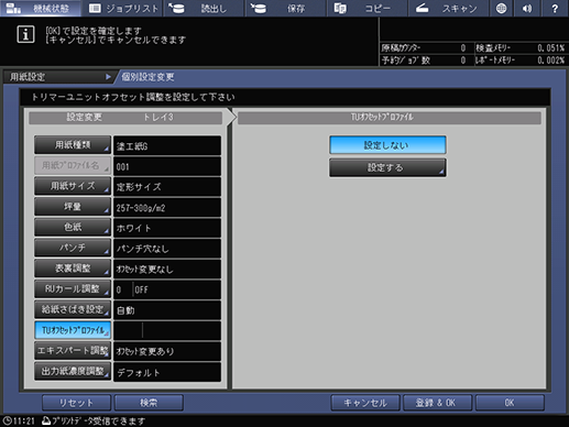 用紙や用紙プロファイルにTUオフセットプロファイルを設定します。