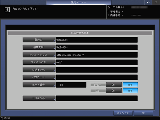 WebDAVの宛先(WebDAVサーバー)を変更します。