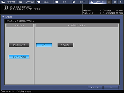 [インデックス紙] | 読込むインデックス紙のサイズを設定します。 | |