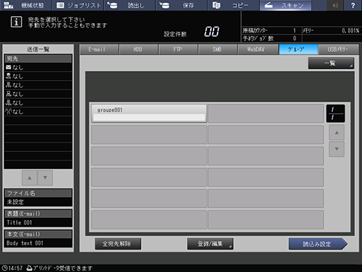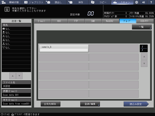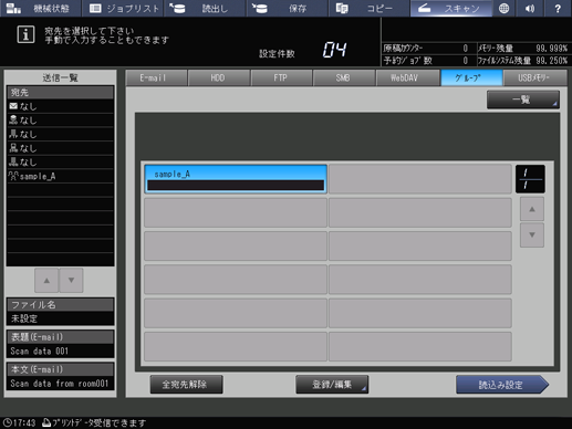 複数の宛先を登録してあるグループにスキャンデータを送信するときに設定します。