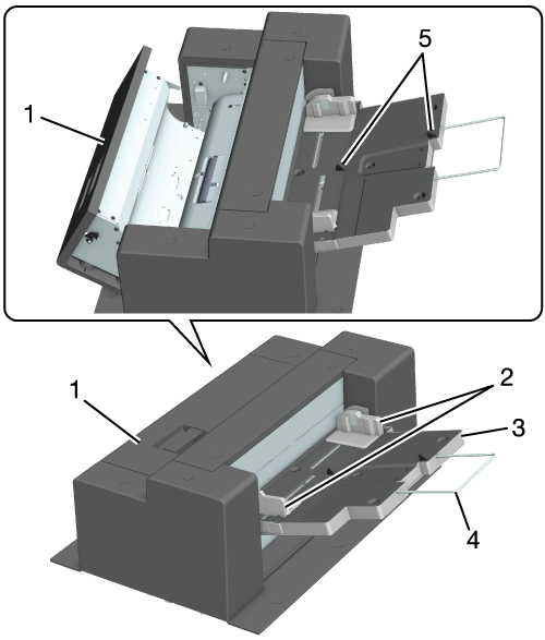 4 | 補助ガイド | 大きなサイズの用紙をセットするときに引出します。 |