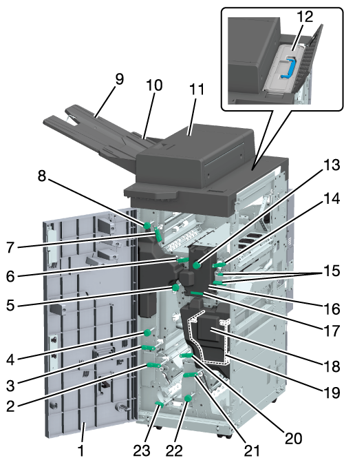 11 | 上カバー | 紙づまり処理のときに、カバーを開けて用紙を取除きます。 |