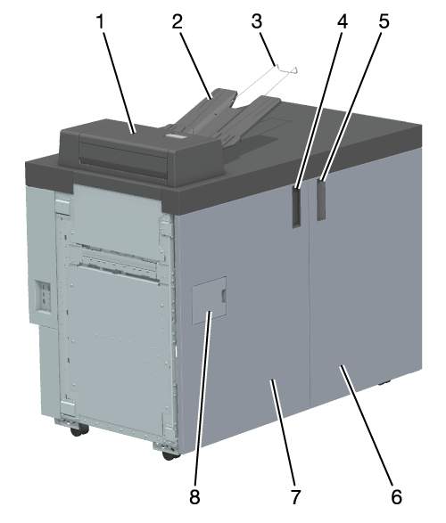 2 | サブトレイ | 断裁やクリースなどの処理をした用紙や、処理なしで搬送された用紙を排紙します。 |