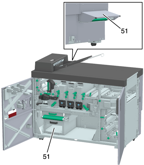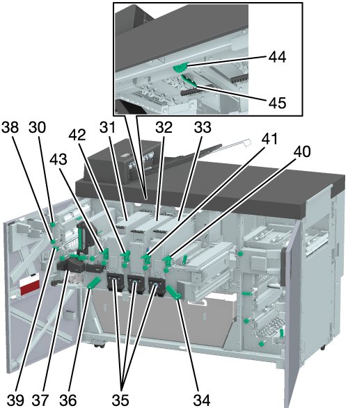 29 | 断裁くず箱 | 断裁くずを捨てるときに引出して処理します。 |