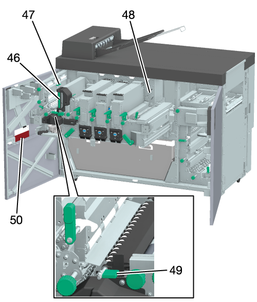 10 | 長尺ユニット MK-764(オプション)(2箇所) | 長尺紙を後処理装置に搬送したり、用紙を反転搬送したりします。 |