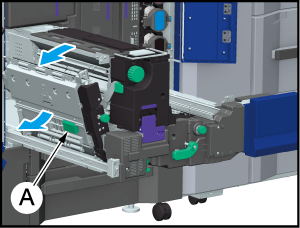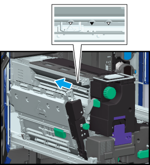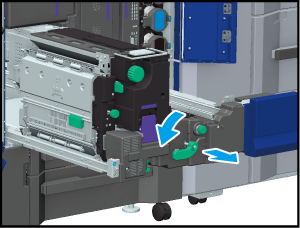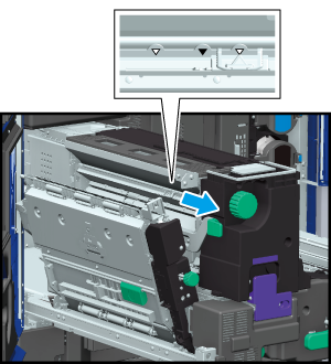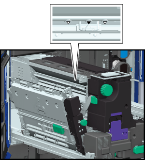 A4 w/v、8.5 e 11 w/v以上の大きなサイズの用紙の画像ムラは、本体定着ユニットの圧着調整レバーを操作して補正できます。