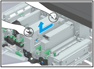 取りはずすときは、黒い取手を持ち、図の矢印の方向に持ち上げてください。