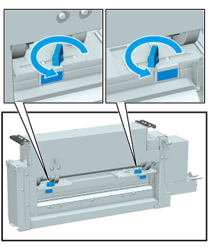 トリマーユニット TU-510で351 g/m2 / 94 lb Bond以上の用紙にクリースする場合は、クリーサーユニット CR-102 / クリーサーユニット CR-103の調整金具の位置を変更してください。