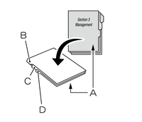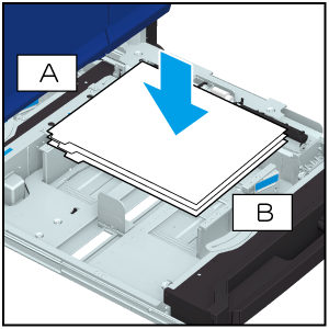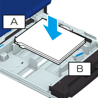 A:奥側 B:手前側 | A:印刷された面/プリントする面(下向き) B:1枚目のインデックス紙 C:2枚目のインデックス紙 D:3枚目のインデックス紙 | A:1枚目のインデックス紙 B:2枚目のインデックス紙 C:3枚目のインデックス紙 D:3部の印刷セット |