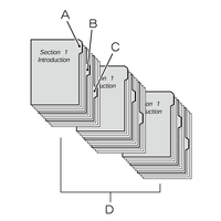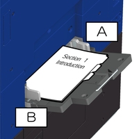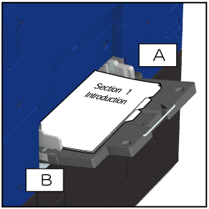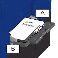 A:奥側 B:手前側 | A:印刷された面/プリントする面 B:1枚目のインデックス紙 C:2枚目のインデックス紙 D:3枚目のインデックス紙 | A:1枚目のインデックス紙 B:2枚目のインデックス紙 C:3枚目のインデックス紙 D:3部の印刷セット |