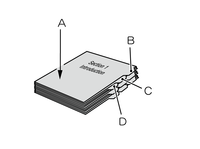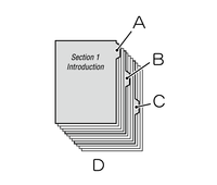 A:奥側 B:手前側 | A:印刷された面/プリントする面 B:1枚目のインデックス紙 C:2枚目のインデックス紙 D:3枚目のインデックス紙 | A:1枚目のインデックス紙 B:2枚目のインデックス紙 C:3枚目のインデックス紙 D:1部の印刷セット |