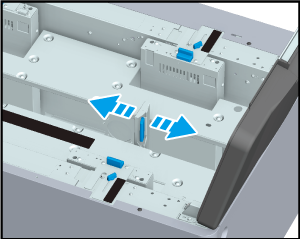 側面ガイド(左)と側面ガイド(右)をそれぞれガイド板上部のサイズ指標に合わせて動かします。