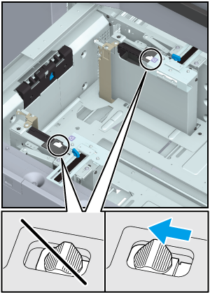 サイド補助ガイドが取付けられている場合は、取りはずしてください。位置決めネジは取りはずす必要はありません。