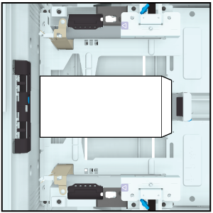封筒のフラップを開いた状態で、フラップが右側に来るように、トレイ先端に突当ててセットします。