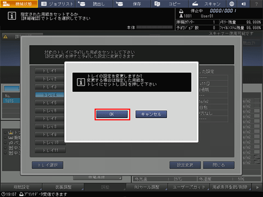 トレイの用紙設定を変更するための確認画面が表示されます。