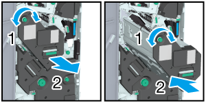 紙づまり処理のためフィニッシャー FS-532のスタッカーを引出すとき、ロックがかかって引出せないときがあります。
