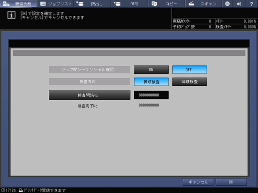 [検査方式] | [昇順検査] | [ジョブ間シーケンシャル確認]を昇順で行います。 |