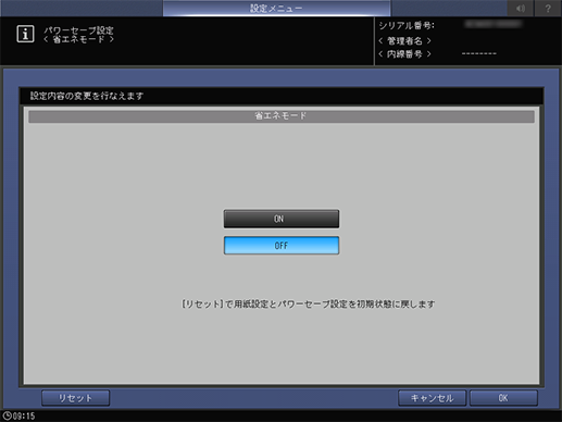 [省エネモード] | [リセットボタン機能] | [コピー]画面の[カラー]設定 |