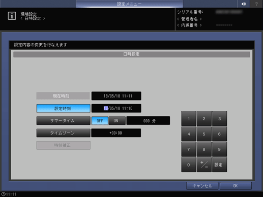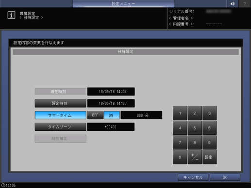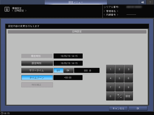 本機の日時やサマータイム、タイムゾーンを設定します。