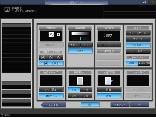 原稿を読込むときの[解像度(dpi)]のデフォルトを設定します。