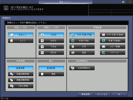 読込む原稿の条件のデフォルトを設定します。