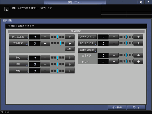 原稿を読込むときの画質条件のデフォルトを設定します。