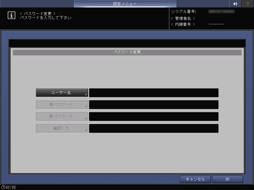 操作パネル - 設定メニュー/カウンター - [ユーザー設定] - [パスワード変更]