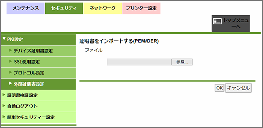 詳細の確認や新しい外部証明書のインポートなどができます。