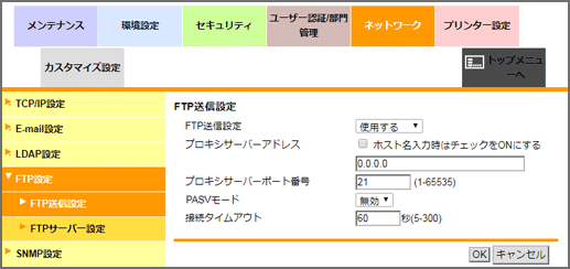 FTP送信機能に関する各種設定をします。