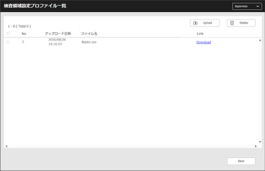 [Link] | [Download]をクリックすると、[検査領域設定プロファイル]のCSVファイルをダウンロードできます。 |