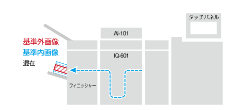 自動検品で異常が検知された印刷物を再印刷せずに、通常の印刷物と同じトレイに排出します。