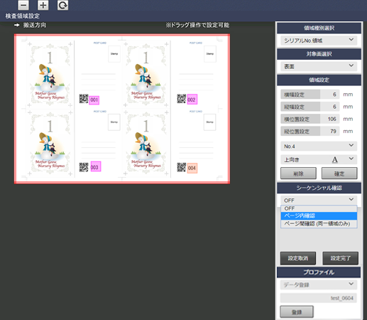バーコード検品またはシリアルNo.検品の対象となる領域内にある連続する数字またはバーコードが、正しく変化しているかを確認できます。ここではその設定方法を説明します。