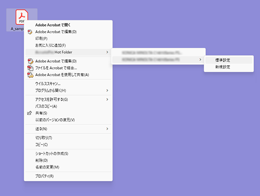 印刷したいファイルを選択し、右クリックメニューからAccurioPro Hot Folderを選択します。
