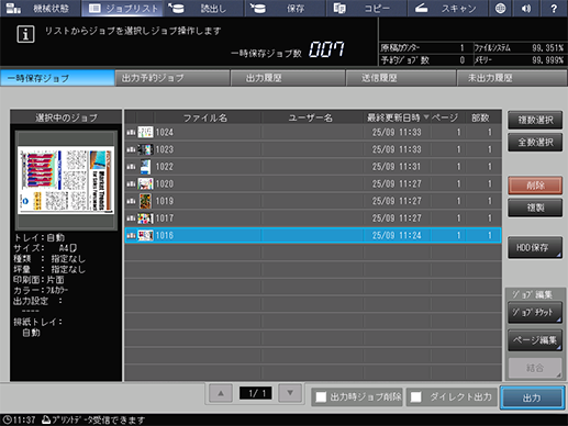 [一時保存ジョブ]を押します。