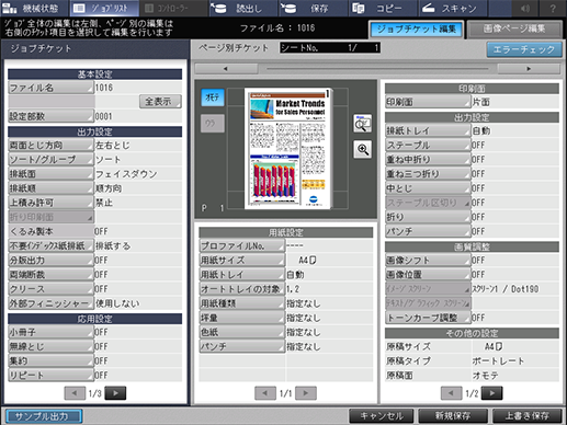 選択したジョブが読込まれて、[ジョブチケット編集]画面が表示されます。