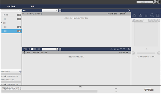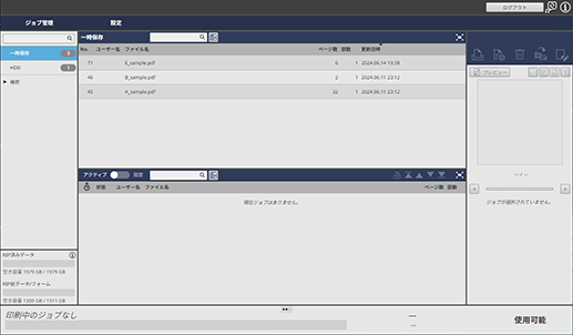 ジョブがアップロードされ、手順2で設定した場所に一時保存ジョブまたはHDD保存ジョブとして保存されます。