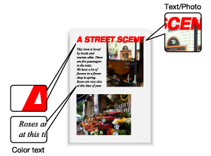 [画像判別調整] | 原稿に文字部分と画像部分が含まれる場合、それぞれに最適な処理になるよう自動的に判別します。 ![]() | |