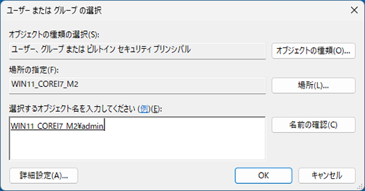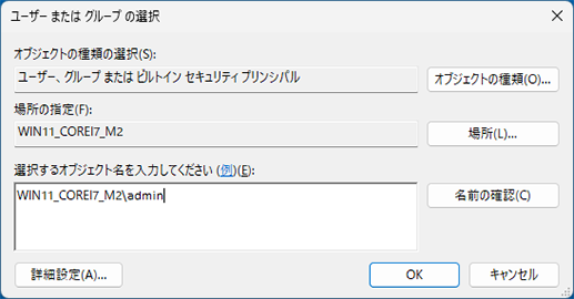 入力に誤りがあると名前が見つかりません。正しいコンピューター名(またはドメイン名)とユーザー名を入力してください。