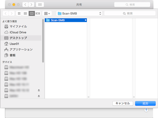 例:Macintosh(Mac OS X)のデスクトップに、「Scan-SMB」フォルダーを作成します。