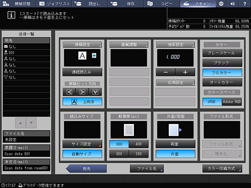 [宛先]を押すと、[スキャン]画面に戻ります。