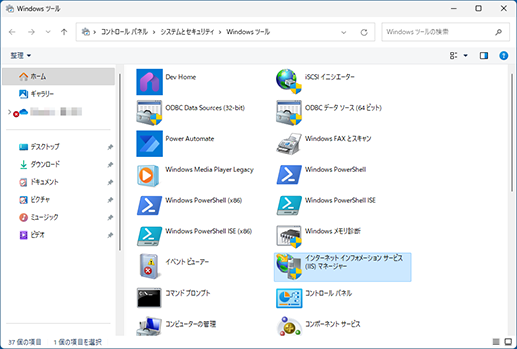 [インターネットインフォメーションサービス(IIS)マネージャー]が起動します。