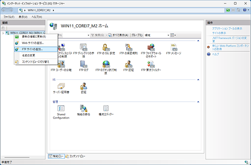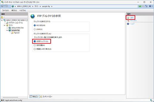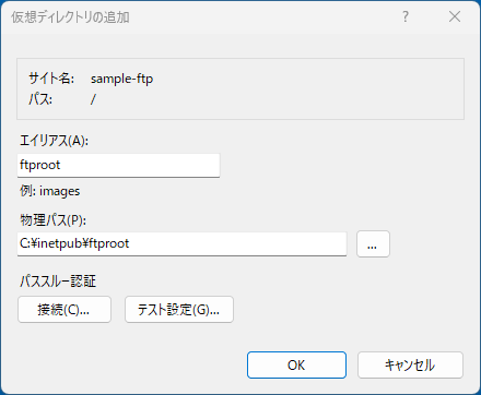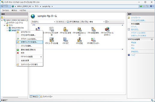 仮想ディレクトリを追加しておくと、Web サーバーのディレクトリをFTP で管理できます。
