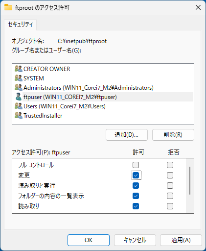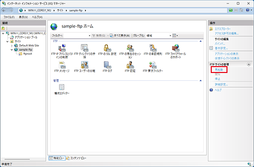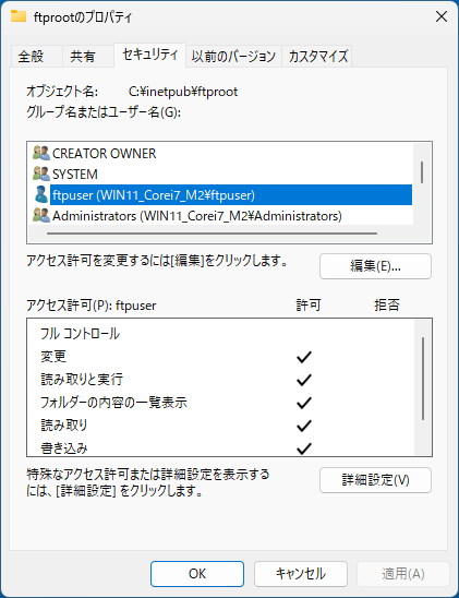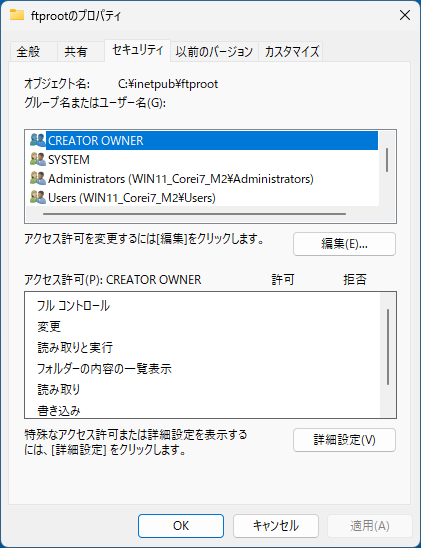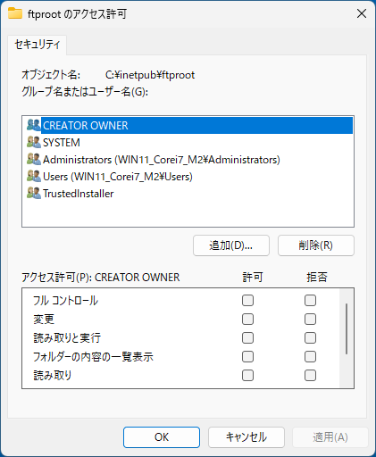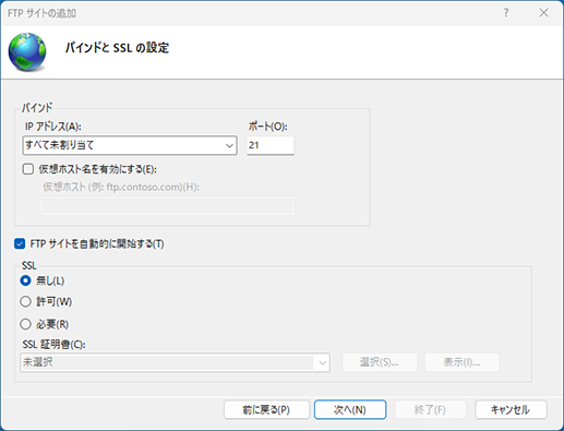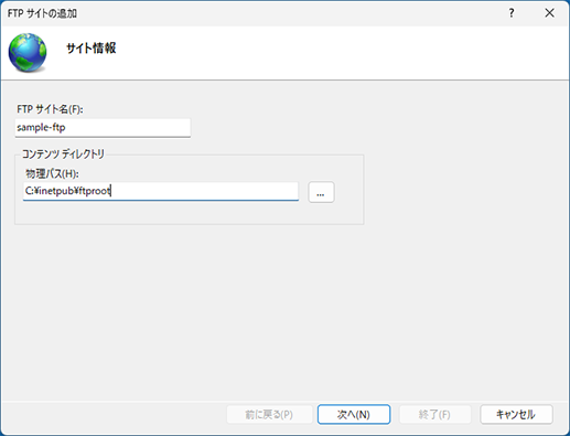 コンテンツディレクトリ:C:¥inetpub¥ftproot