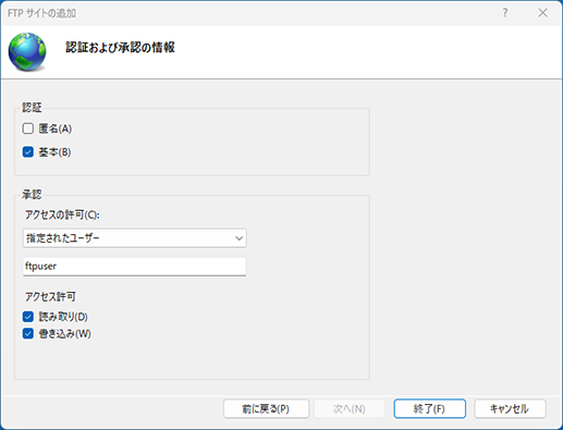 [FTPサイトの追加]画面が表示されます。