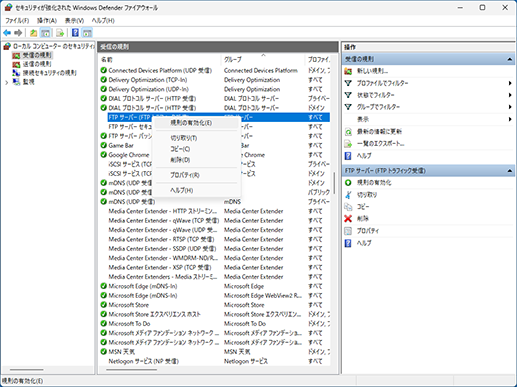 [コントロールパネル] - [システムとセキュリティ] - [Windows Defender ファイアウォール] - [詳細設定]