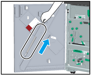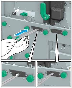 清掃棒を元に戻すときは、清掃棒先端のパッド部を手前側に向けて収納してください。パッド部が扉側を向くように差込むと、パッド部が汚れたり、破損の原因になります。